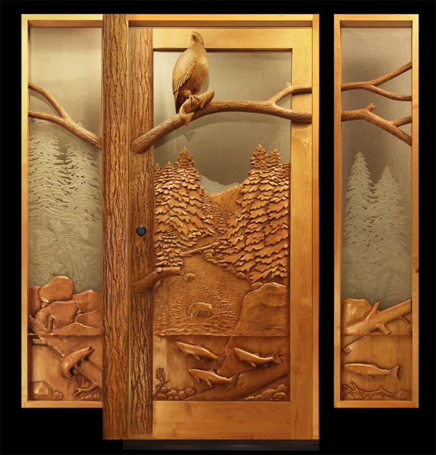 Impress your guests with this exquisitely hand-carved pheasant door. Your choice of hardwoods such as Mahogany, Black Cherry, Honduras Rosewood, Teak, Black Walnut and more allow you to create a unique look and feel that makes your house stand out above any other. Each carving and door assembly in your wood door is hand tooled adding even more customization. Your hand carved wood door is not only an essential part of your home but it is also a work of art.