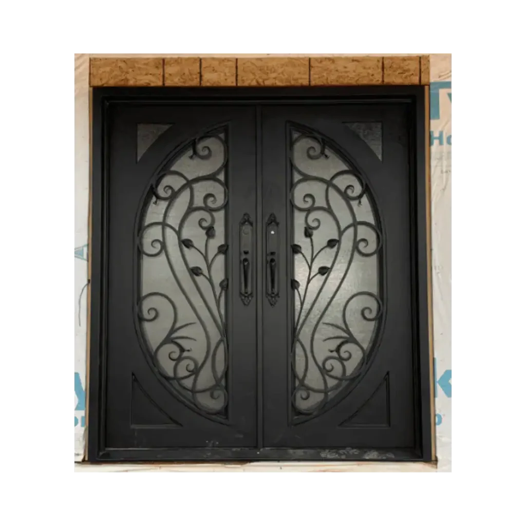 The EL1040 MCD wrought iron entry door is a bold custom double arched design featuring decorative scroll panels layered over glass. Handcrafted from very heavy 12-gauge wrought iron, it ensures durability, artistry, and security. Each door includes operable glass panels that open independently, allowing ventilation and convenient cleaning. Perfect for estates, villas, or luxury residences, the EL1040 MCD reflects Monarch Custom Doors’ dedication to blending timeless artistry with strength and long-lasting beauty.