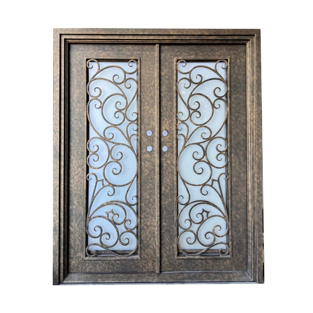 Beautiful wrought iron door designs will bring unparalleled quality to your home. Each beautiful door is made from a very heavy 12 gauge wrought iron that gives your door the perfect combination of strength and elegance. All of our wrought iron doors feature operable glass panels that open independently to provide ventilation and convenient cleaning.